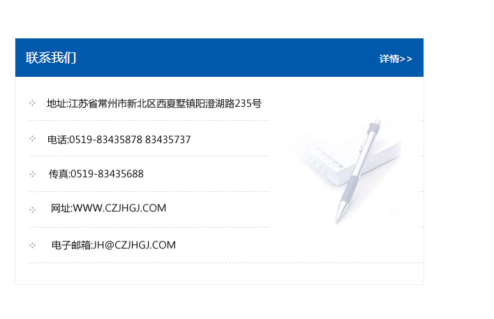地址:常州市新北區友邦商務大廈1幢16、17層  電話:0519-85101652  傳真:0519-85112595  郵編:213022  網址:www.cz-jiayue_cn.gdsiker.com  郵箱:xiajifengaa@163.com